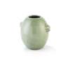in imitation of a drum, the vase moulded with two goat-head handles on the shoulder, the body covered overall with a light-green glaze, leaving the disc-shaped foot ring unglazed