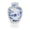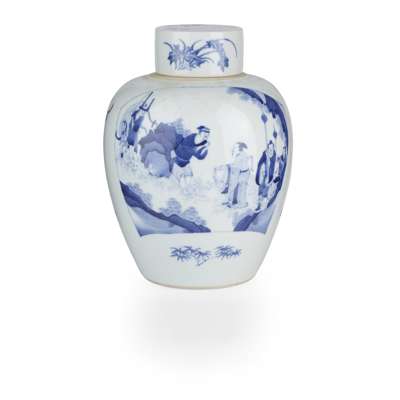 painted on the tapering ovoid body with cartouches with officials greeted by figures
