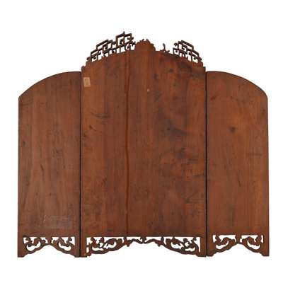 FUJIAN GILT-PAINTED CARVED WOODEN THREE-FOLD TABLE SCREEN