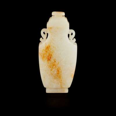 清 仿古白玉獸面如意耳扁瓶含蓋
