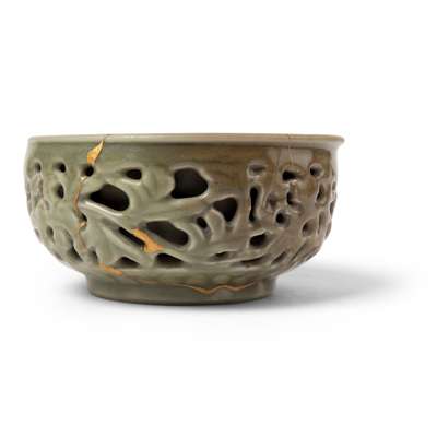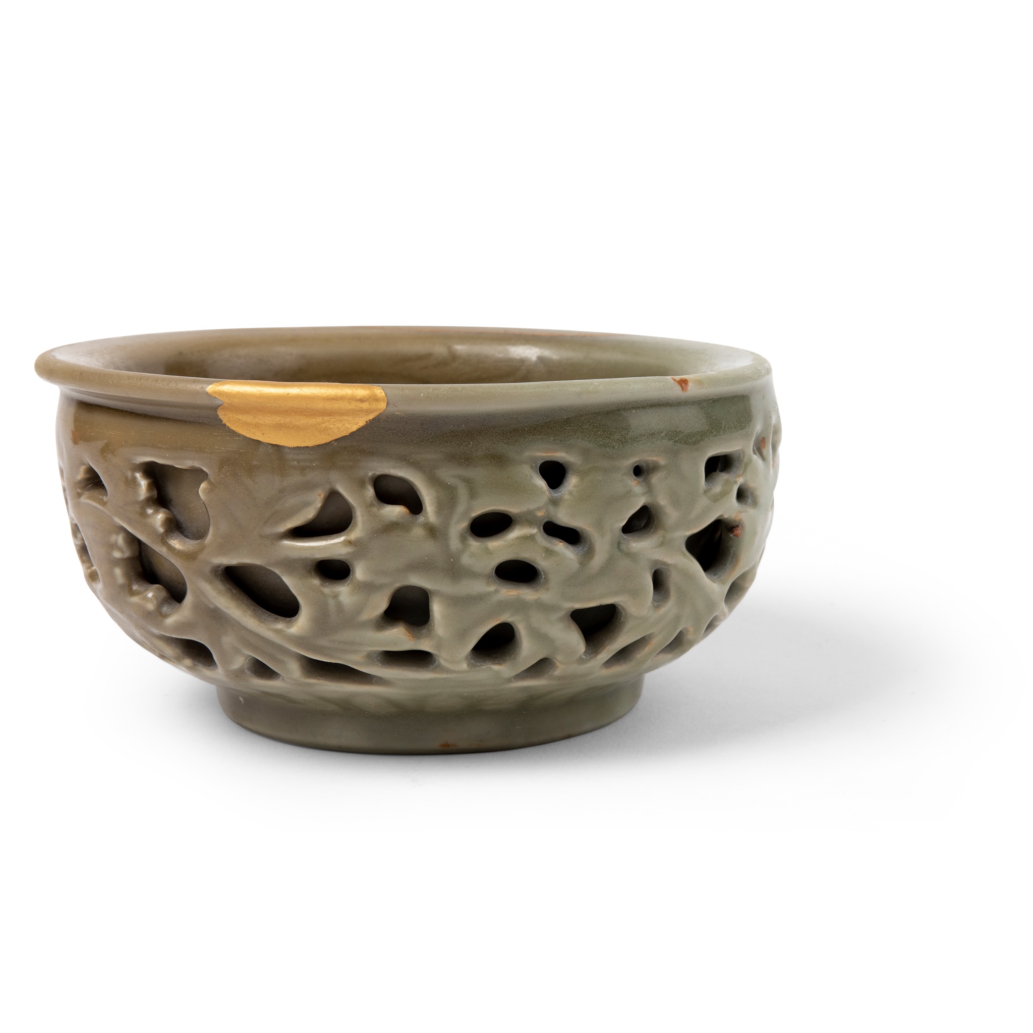 Note: a Ming dynasty Longquan celadon warming bowl with comparable reticulated design was sold at Christie's New York, 17 March 2017, lot 1171; another warming bowl with carved decoration on the exterior and dated to the early Ming dynasty was sold at Sotheby's Hong Kong, 18 December 2020, lot 1011.