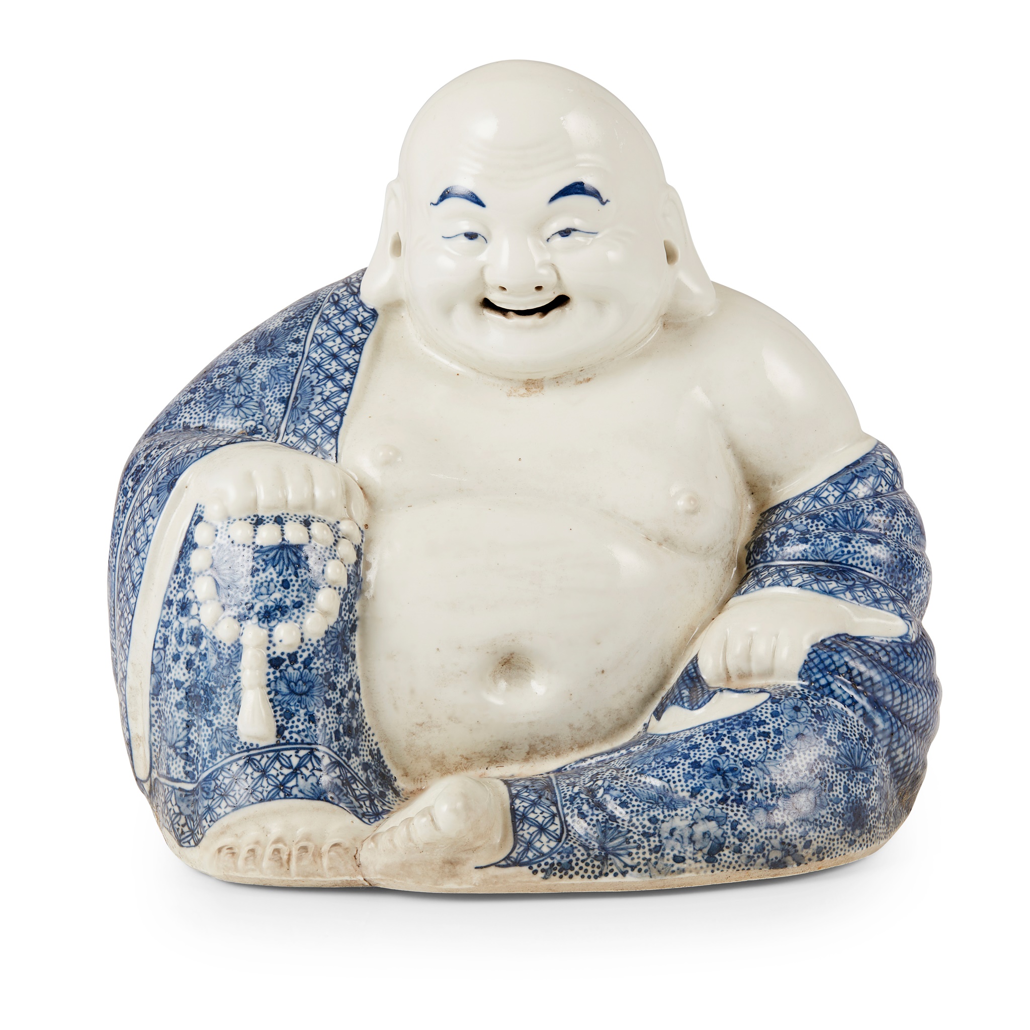 清末民初 江西景鎮游隆盛款 青花彌勒佛座像
