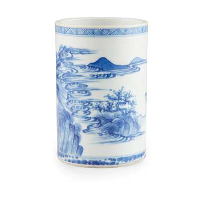 BLUE AND WHITE BRUSH POT