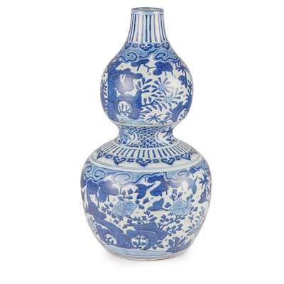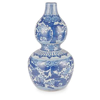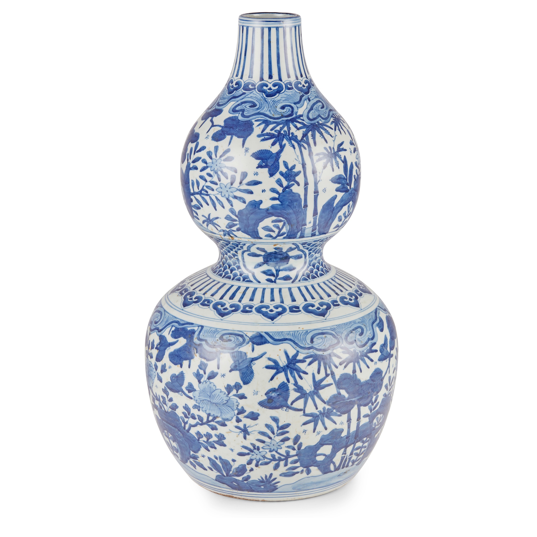 LARGE BLUE AND WHITE DOUBLE-GOURD VASE