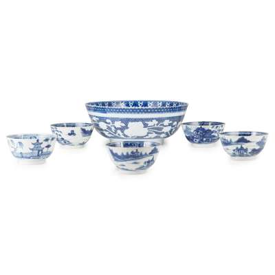 GROUP OF SIX EXPORT BLUE AND WHITE BOWLS