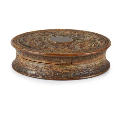 CARVED TORTOISHELL CIRCULAR BOX AND COVER Y