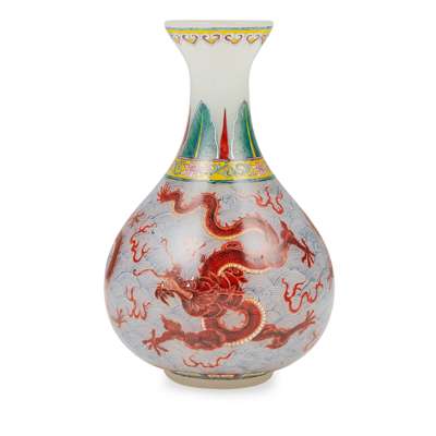 ENAMELED GLASS 'DRAGON' BOTTLE VASE