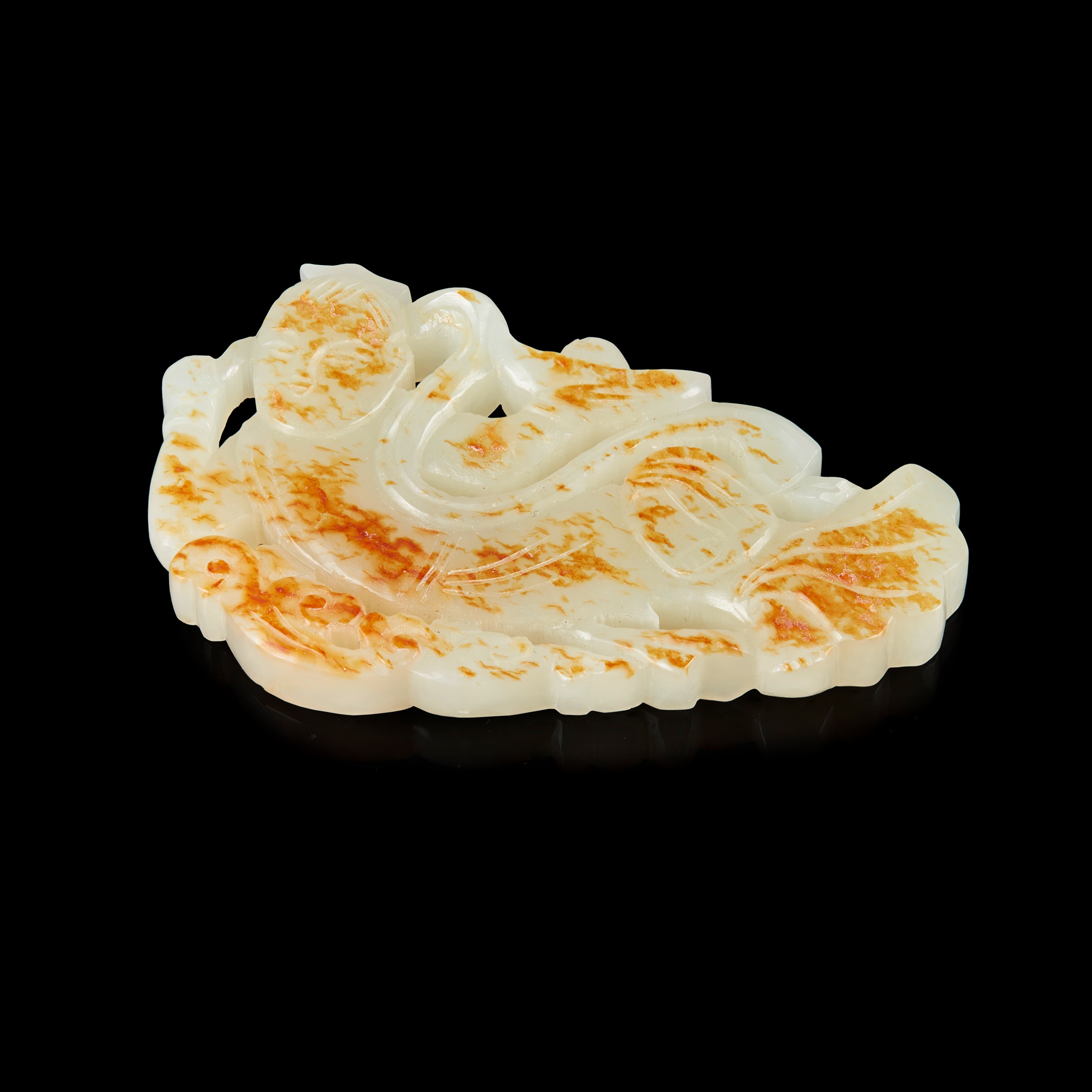 WHITE JADE WITH RUSSET SKIN CARVING OF AN APSARA