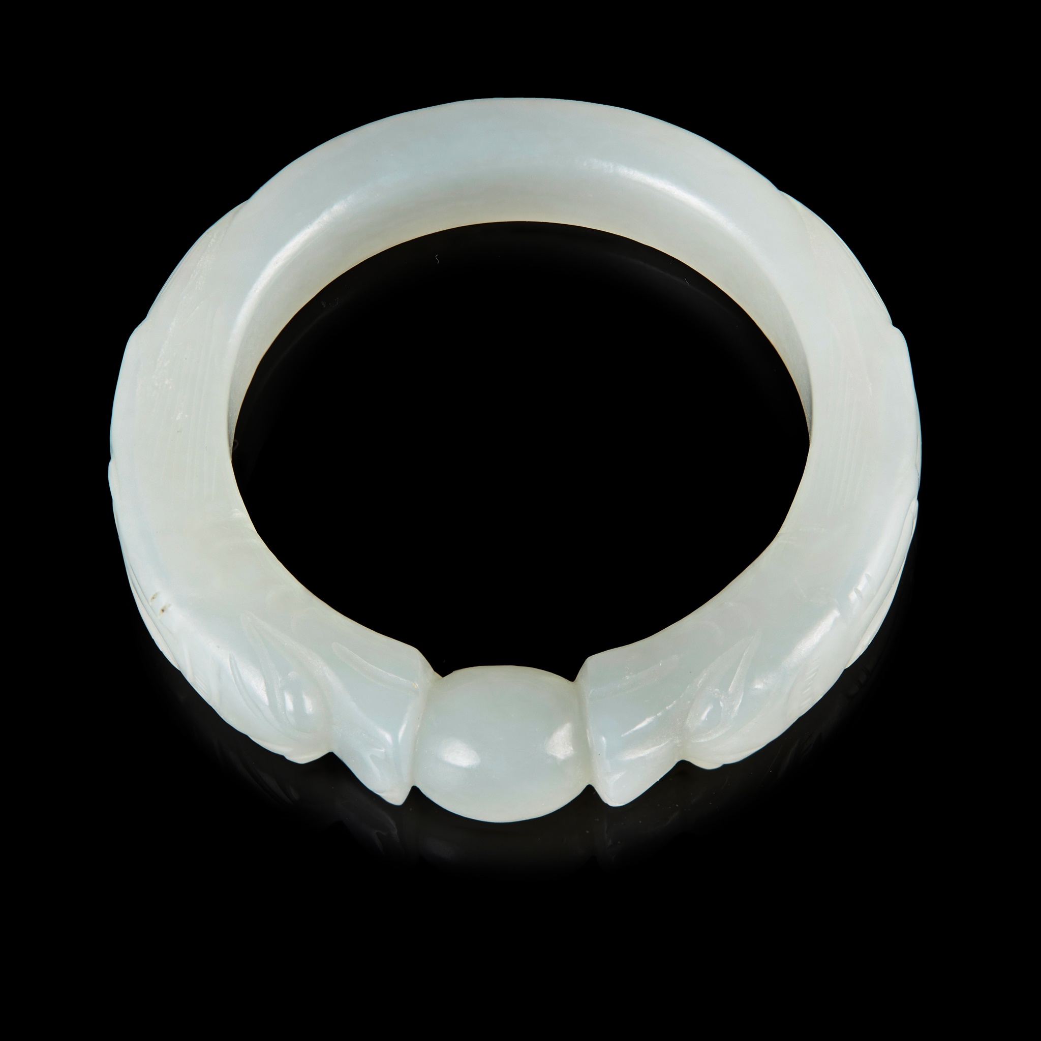 WHITE JADE 'DRAGON AND PEARL' BANGLE