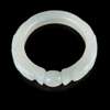 of circular form, the exterior carved in relief with two sinuous chi dragon heads flanking a large round pearl, the finely polished semi-translucent stone of an even white colour