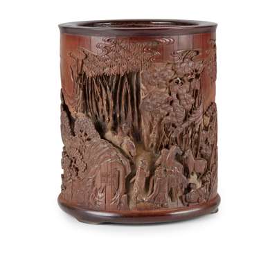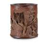 CARVED BAMBOO 'HUNTING' BRUSH POT