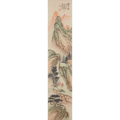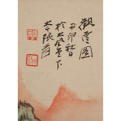 張大千款 《觀雲圖》 紙本設色 立軸 兩幅
