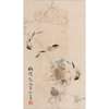 INK PAINTING WITH BIRDS AND POMEGRANATES