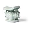 the main body sculpted in the form of two entwined makaras under a large ruyi-head pillow top, all supported on an oval platform with hollow base, all covered with a translucent pale bluish glaze which pools to deeper tones in the carved recesses, the underside hollow in the centre and the broad flat foot left unglazed showing the white porcelain body impressed with linen mesh on the base before firing