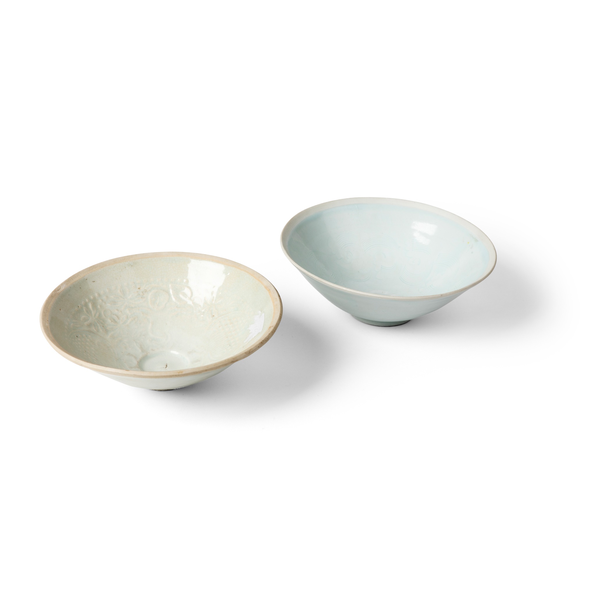 宋 青白釉模印花卉紋 及 篦劃紋斗笠碗 (共兩件)