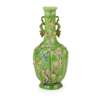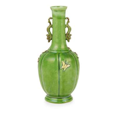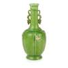 民國 乾隆款 綠地素三彩雕瓷喜上眉梢雙龍耳瓜棱瓶