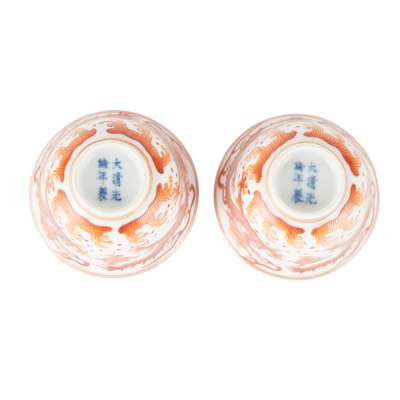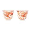 PAIR OF IRON-RED DECORATED 'DRAGON' CUPS