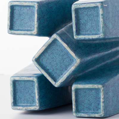 ROBIN'S EGG-GLAZED CONJOINED SQUARE-SECTION VASE