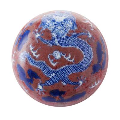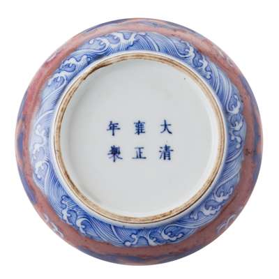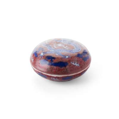 二十世紀 雍正款 青花釉裏紅雲龍紋圓盒