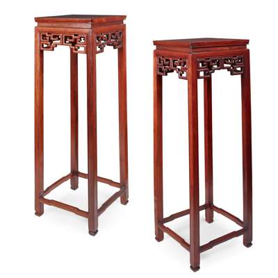 PAIR OF HARDWOOD JARDINIÈRE STANDS