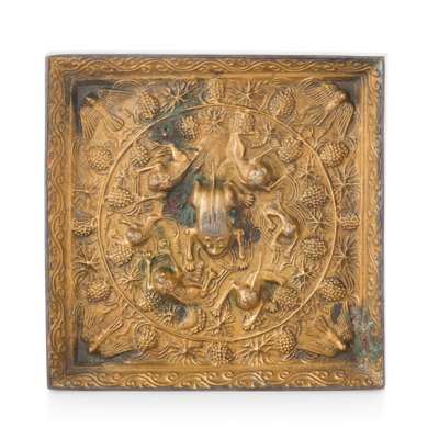 或為唐代 局部鎏金銅海獸葡萄紋方鏡