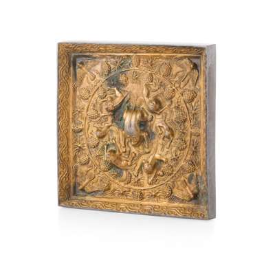 PARCEL-GILT BRONZE SQUARE 'LION AND GRAPEVINE' MIRROR