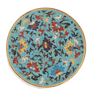 嘉靖款 銅胎掐絲琺瑯纏枝蓮紋蓋盒