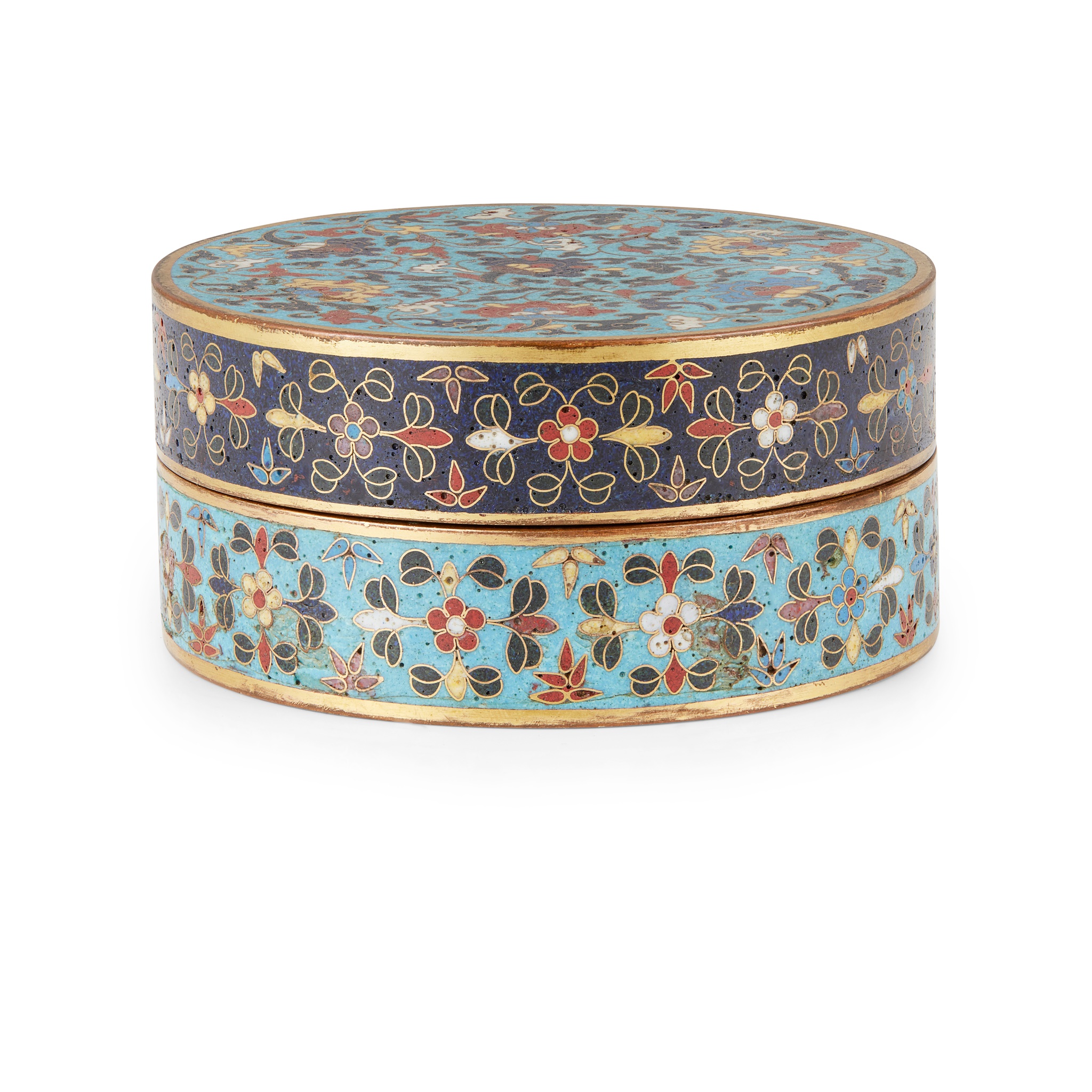 CLOISONNÉ ENAMEL 'LOTUS' BOX AND COVER