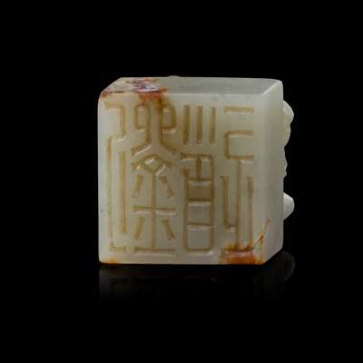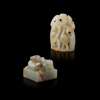 十九至二十世紀 青白玉鏤雕路路連科爐頂 及 青玉雕螭龍紐方章