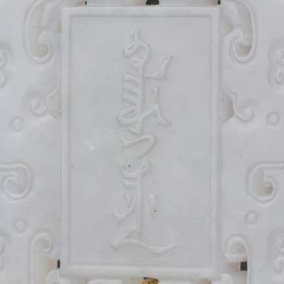 十九至二十世紀 白玉透雕‘齋戒’玉牌、白玉人物題詩玉牌 及 青白玉帶皮雕漁家樂擺件(共三件)