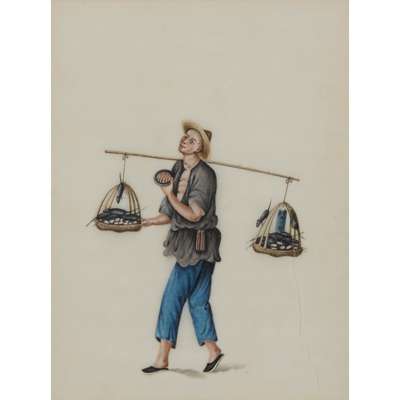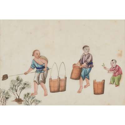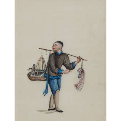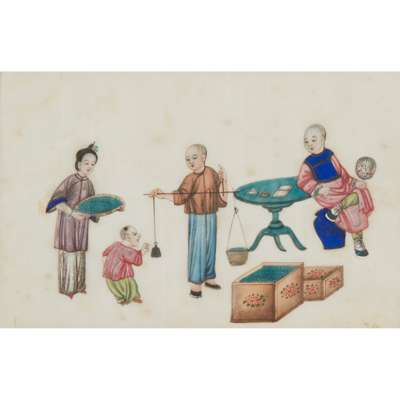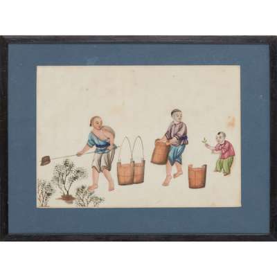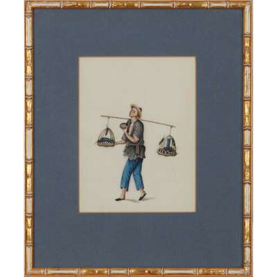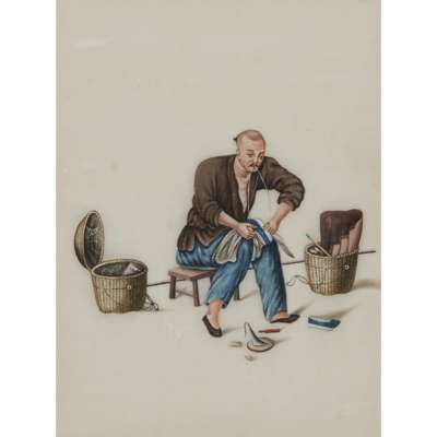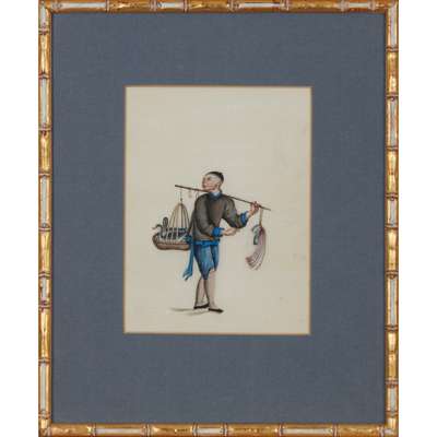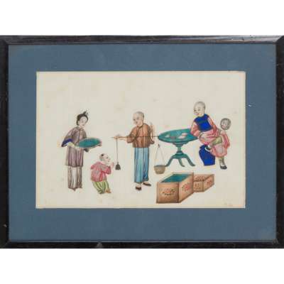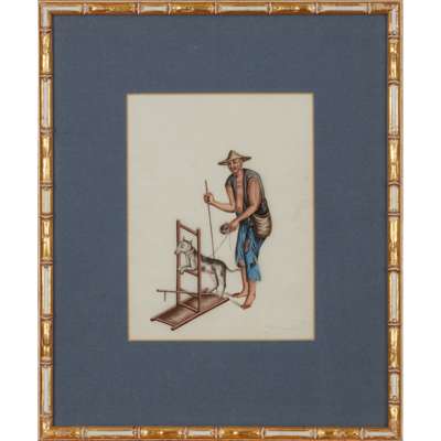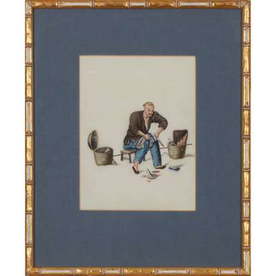 清 廣東外銷百業通草畫 鏡框(一組六幅)