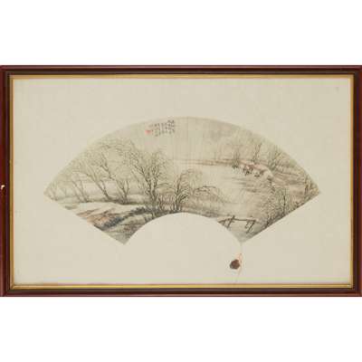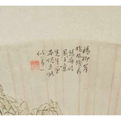 ink and colour on paper, inscribed with a poem, signed Hong Xiu, attributed to Zhou Zijing, sealed, mounted on silk and paper board, framed