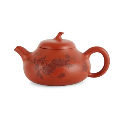 ‘曉君製陶’款 宜興紫砂堆料花卉圖茶壺