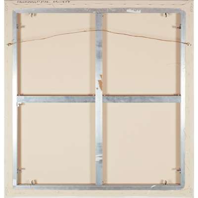 Painted in the typical large format that characterises this series (apparently selected as it is the span of the artist’s arm), it features a block of pure highly saturated blue, the striations of Innes’ gestural brushwork visible upon scrutiny. The year 1995 saw the artist meditate on the minimalistic juxtaposition of just two tonal fields, in this case Paynes Grey and Cobalt Blue, meeting in a feathery, bleeding intersection. Though graphic, indeed almost stark, nothing is ever quite what it first seems with a work by Innes. “Everything that pertains to be minimal of course is not,” he once commented. “The way the eye works, it goes to the painted area, then the white, then the feathering. Something simple becomes complex.”