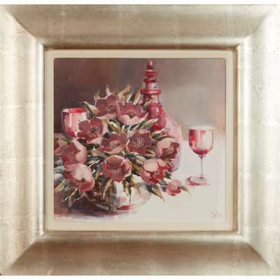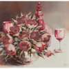 FLOWERS WITH DECANTER AND WINE GLASSES