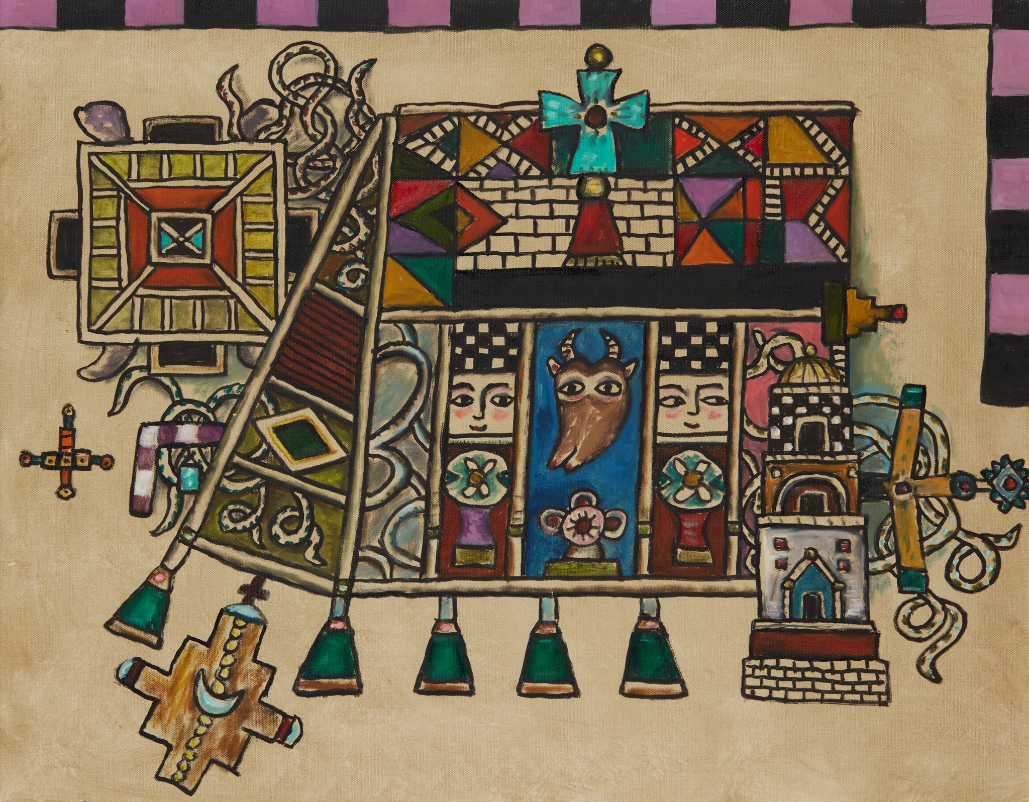 Alan Davie’s Magic Casket of 1996 is a mature example of the artist’s work. His unique vocabulary of signs and symbols, combined with the implications of the title, invite the viewer to form a narrative based on personal interpretation. Davie is the subject of an exhibition which runs at Dovecot, Edinburgh until 24 September 2022.