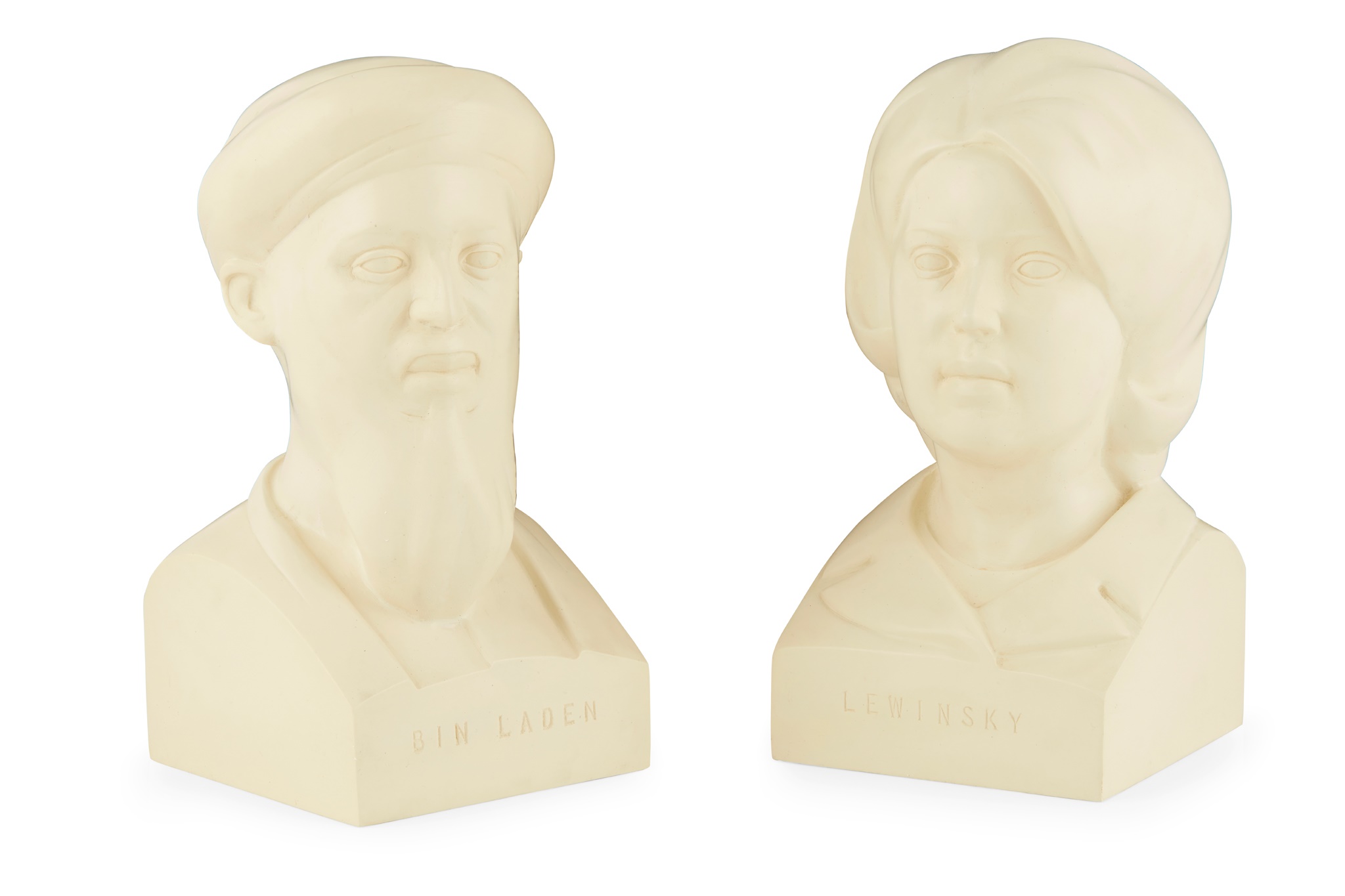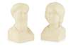 A pair of portrait busts, each incised with initials and numbered 16/100 to underside, cast resin