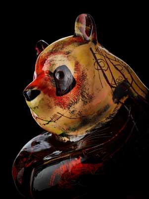 Signed to panda's right leg, bronze with acrylic and lacquer