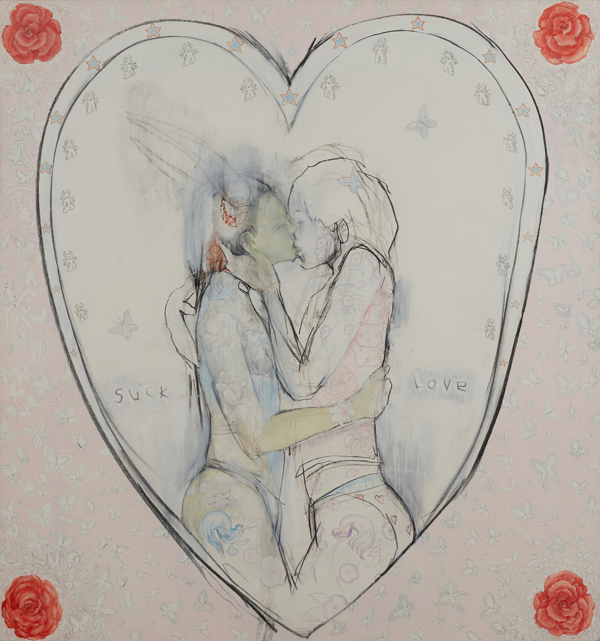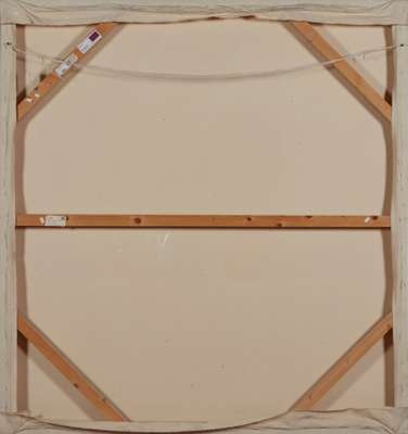 Inscribed with title, indistinctly signed verso, mixed media on canvas