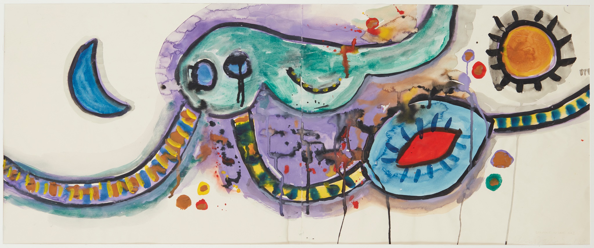 Note: Few British artists of the 20th century are quite as intriguing as Alan Davie. Low key and independent, Davie operated outwith the art world ‘scene’ until his death in 2014 which means that, despite his popularity amongst critics and collectors, he isn’t the household name he perhaps deserves to be. Hopefully this is set to alter; it is with happy serendipity that this sale coincides with a major exhibition of his work at Dovecot Studios, Edinburgh, celebrating the centenary of his birth.