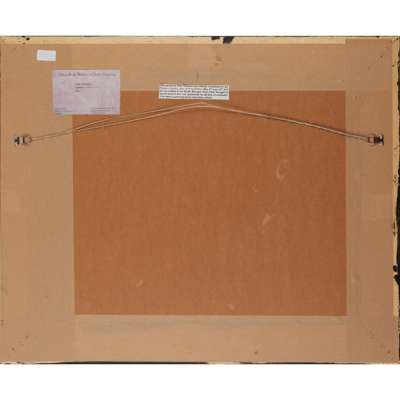 Signed lower right, pastel on red paper