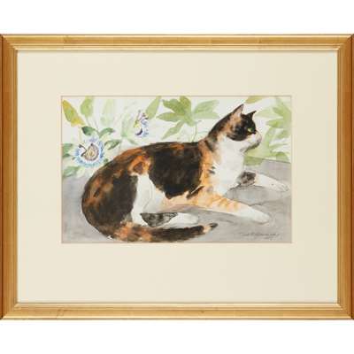 TORTOISESHELL CAT AND PASSION FLOWERS - 1989