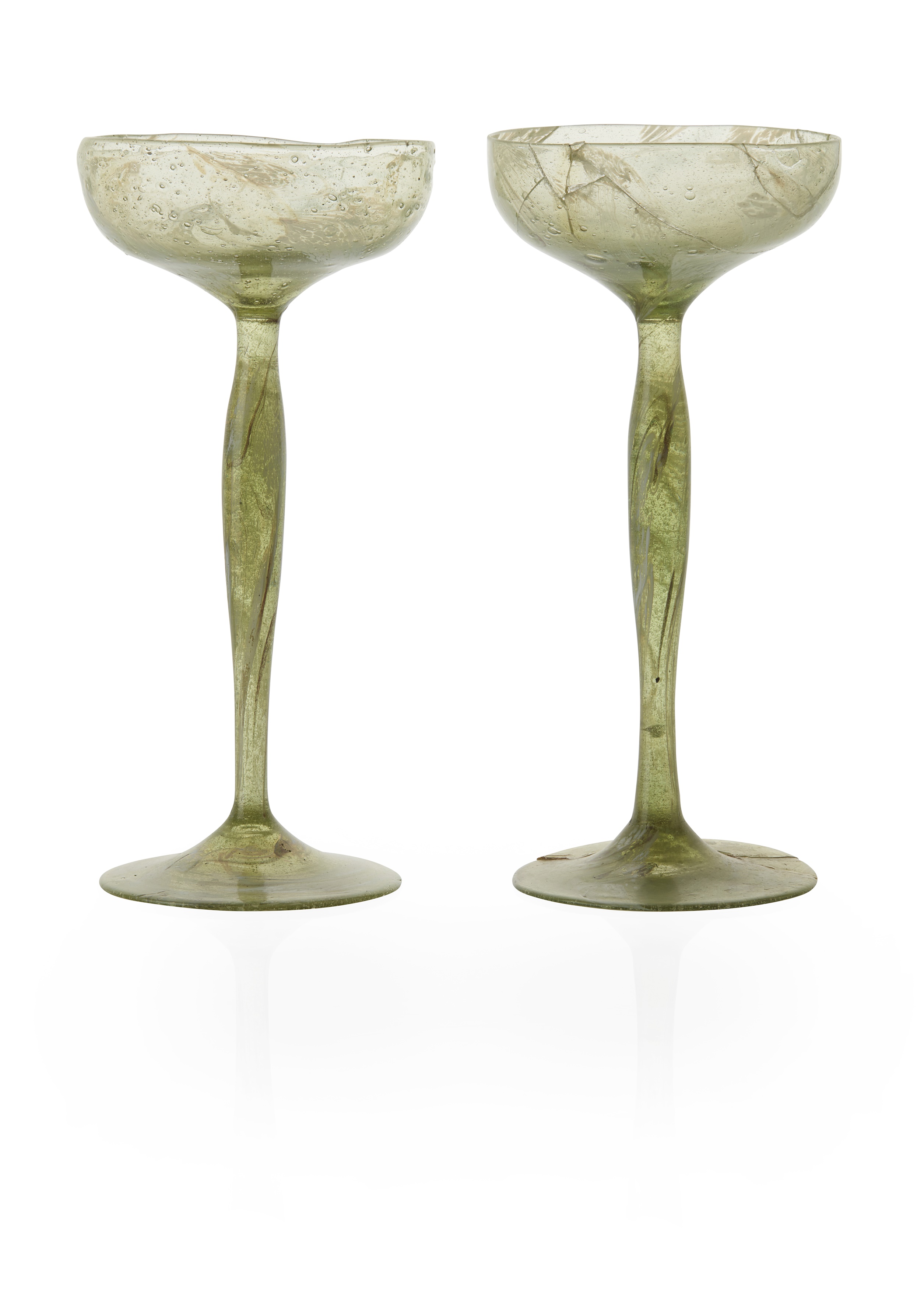 green glass, with aventurine and opaque trailed decoration, 20.5cm high; and ANOTHER 'CLUTHA' GLASS COUPE (broken and repaired), 21cm high