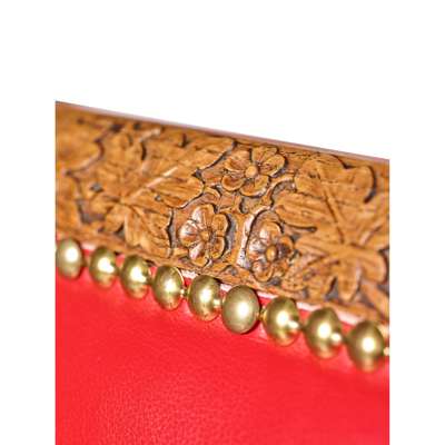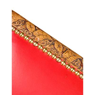oak, with close-nailed leather upholstery, the top rail carvings representing fruiting vines; flowering foliage; thistles; convolvulus; ivy; flowering currants