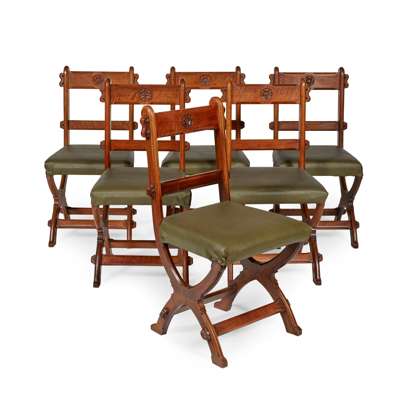 SET OF SIX GOTHIC REVIVAL DINING CHAIRS, CIRCA 1865
