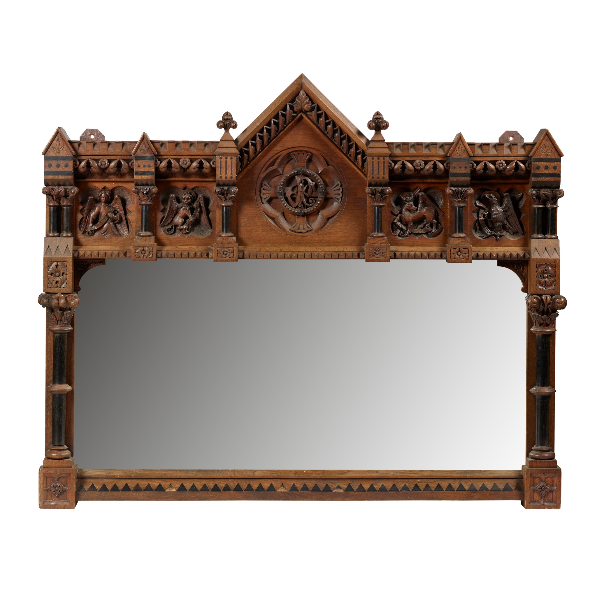 REFORMED GOTHIC OVERMANTEL MIRROR, CIRCA 1870