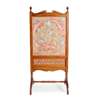 mahogany, with the embroidered panel in coloured silks on a linen ground, glazed