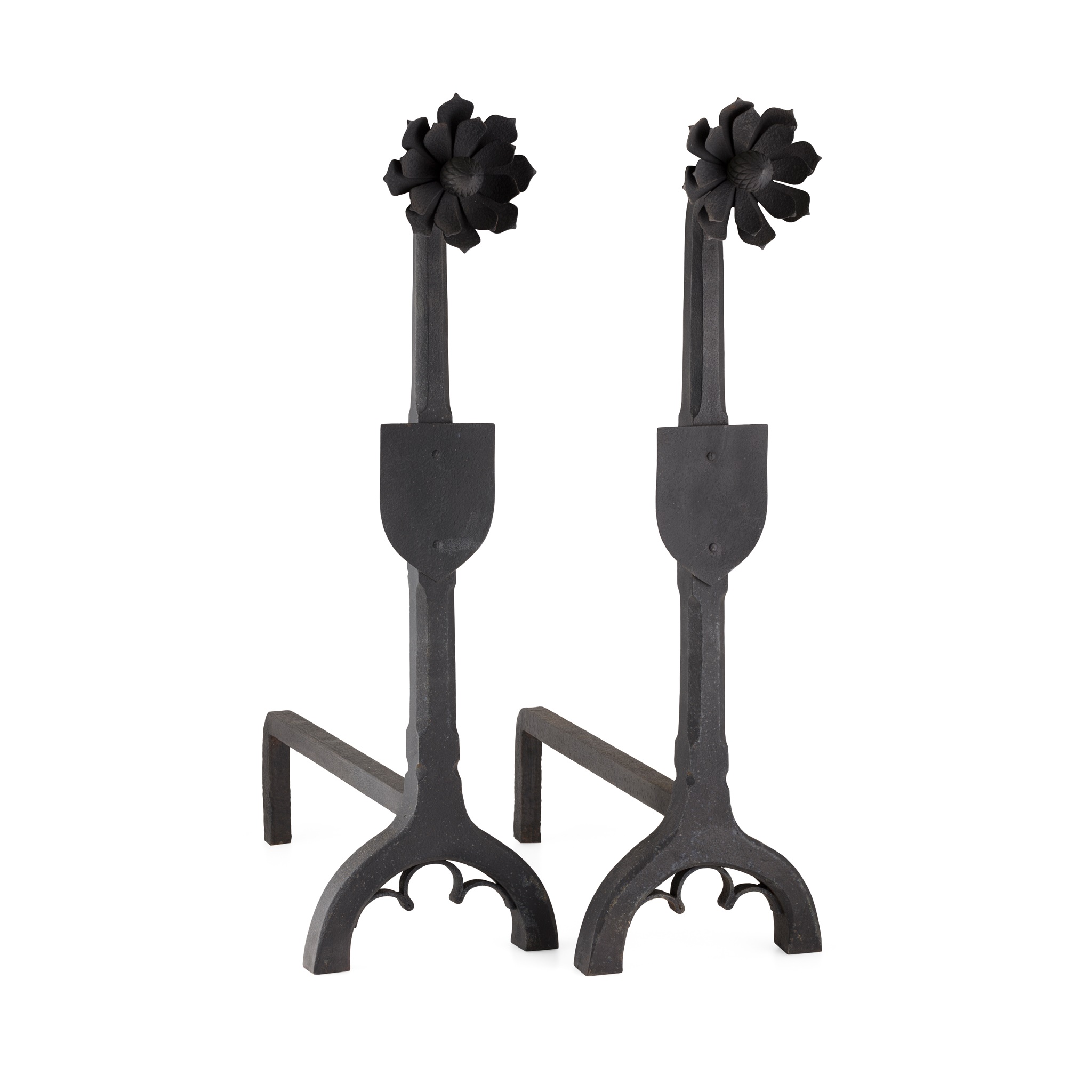 PAIR OF GOTHIC REVIVAL FIRE DOGS, CIRCA 1890