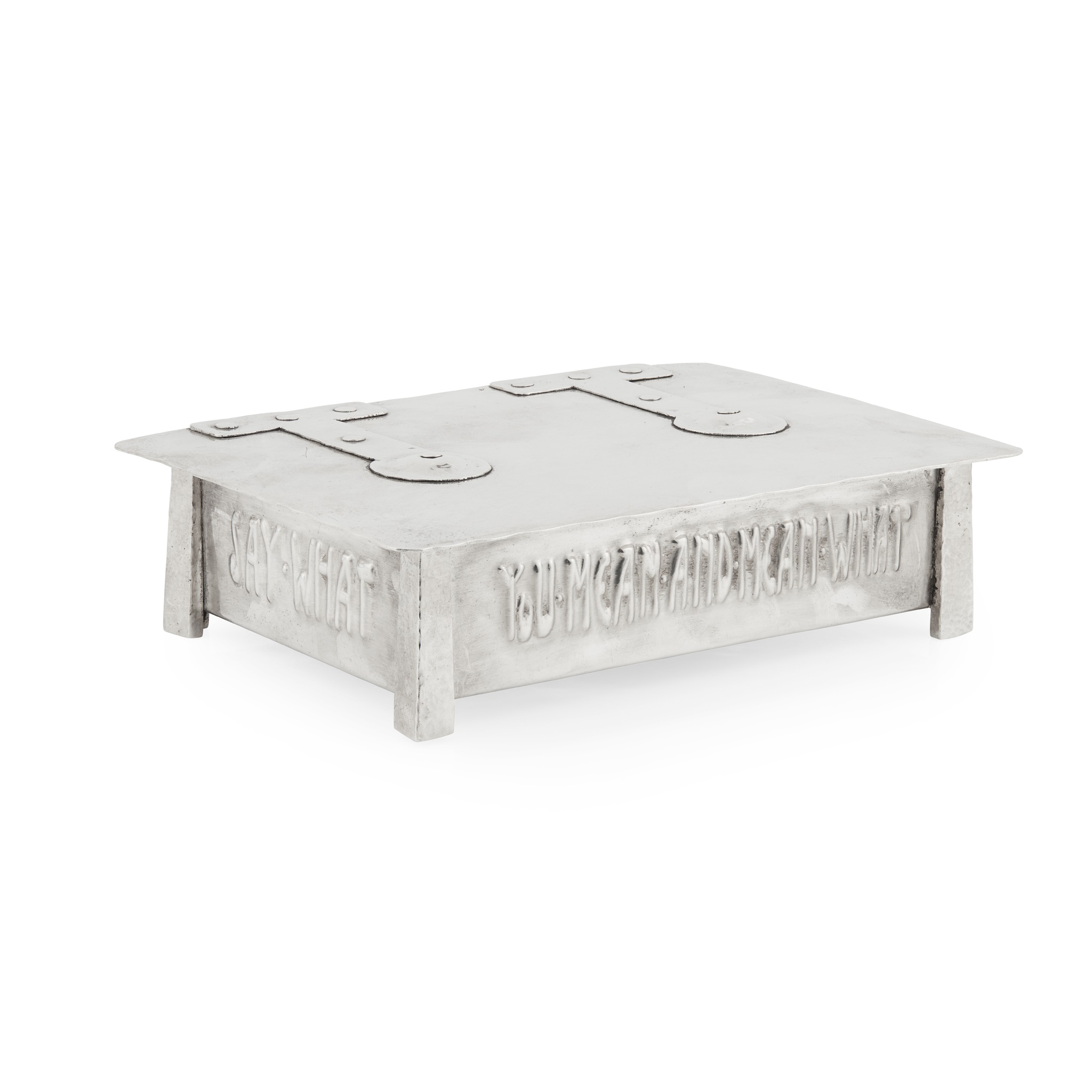 silver-plate, inscribed SAY WHAT YOU MEAN AND MEAN WHAT YOU SAY, the interior fitted with two ink bottles, stamped S monogram, registration number T.M. 392927