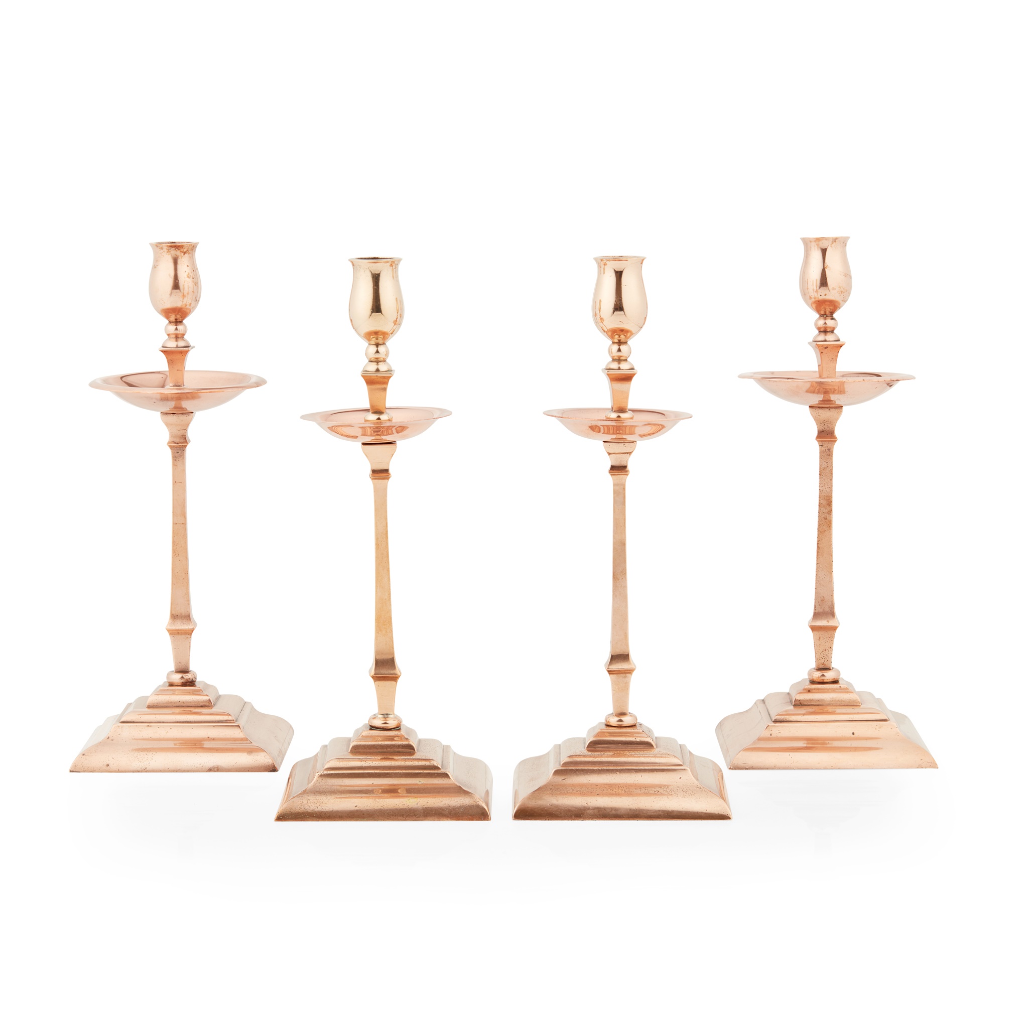 TWO PAIRS OF ARTS & CRAFTS CANDLESTICKS, CIRCA 1900